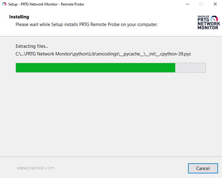 Wait until the installation is complete. The remote probe then automatically connects to your PRTG core server.
