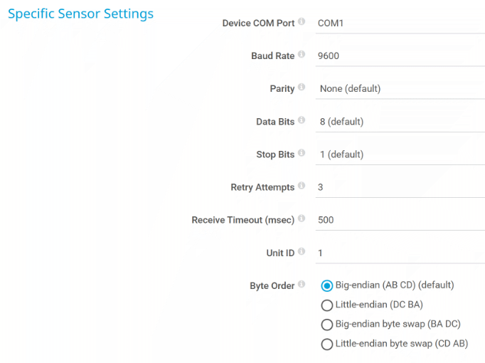 Enter the number of retries until a timeout occurs. If you enter 0, the sensor does not retry the communication attempt. The default value is 3. Enter an integer.