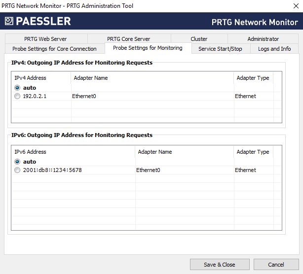 • The default setting is auto. PRTG automatically selects an IP address.